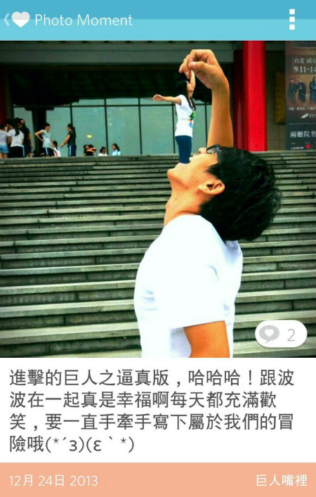 這是一款為情侶打造的專屬 App,提供情侶兩人的專屬空間,除了擁有小小聊天室外,還提供相簿、回憶寶盒、小紙條留言、行事曆等功能,讓情侶間愛情加溫,天天都是情人節唷!