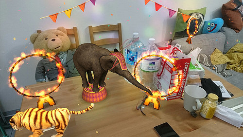 AR 就是『擴增實境』的意思,利用陀螺儀、與畫面偵測技術,讓拍照時可以將 3D 的背景或是物件即時地加入在影像中,除了拍照甚至拍攝影片都可以!